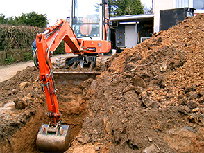 Mit unserem Maschinenpark bieten wir Ausschachtungen z. B. für Neuanlagen oder Flächenveränderungen sowie Freischachtungen aufgrund feuchter Hauswände an. Der Boden wird bei Bedarf gelagert oder zur Deponie entsorgt.